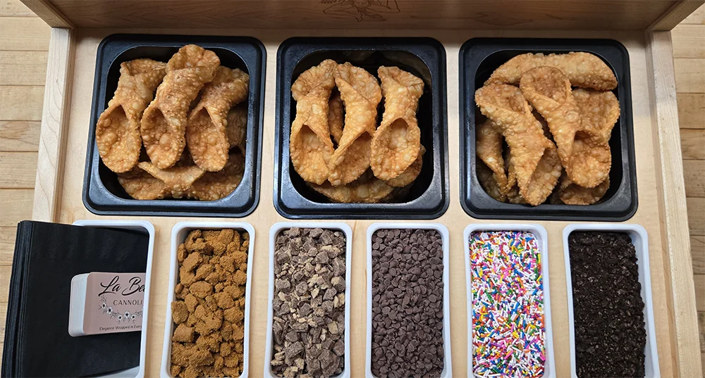 Des cannoli fraîchement fourrés servis en direct chez vous. Une expérience gastronomique unique dont vos invités se souviendront longtemps.