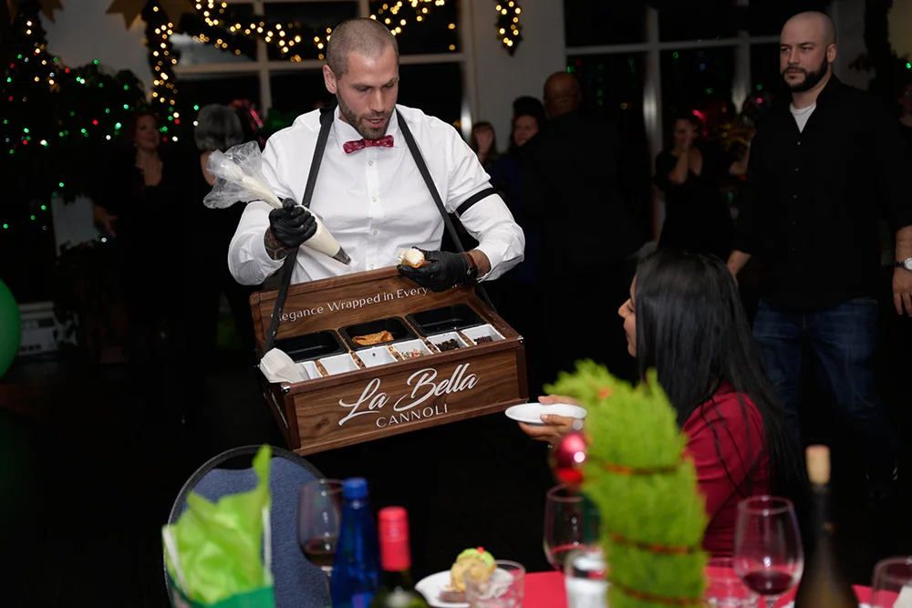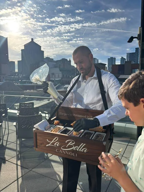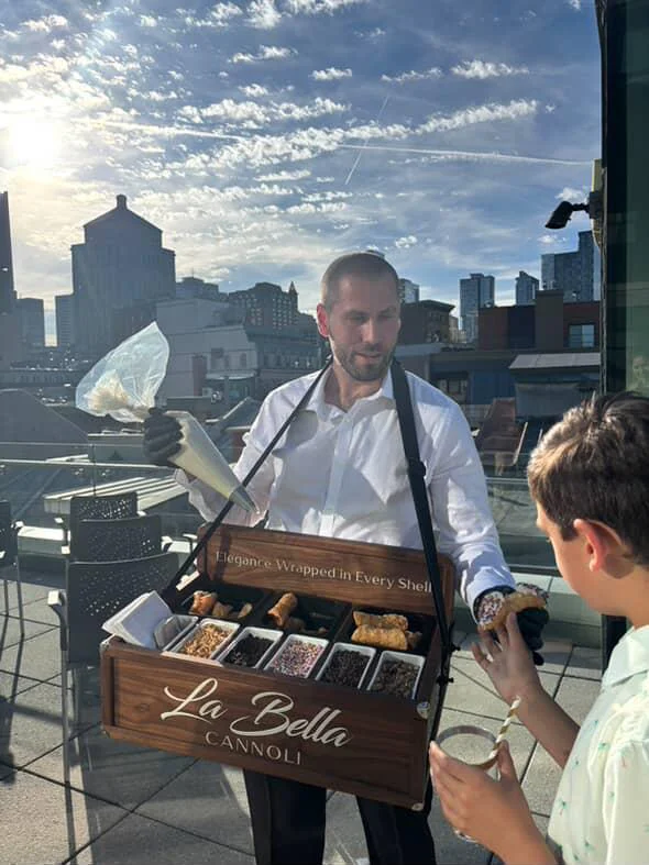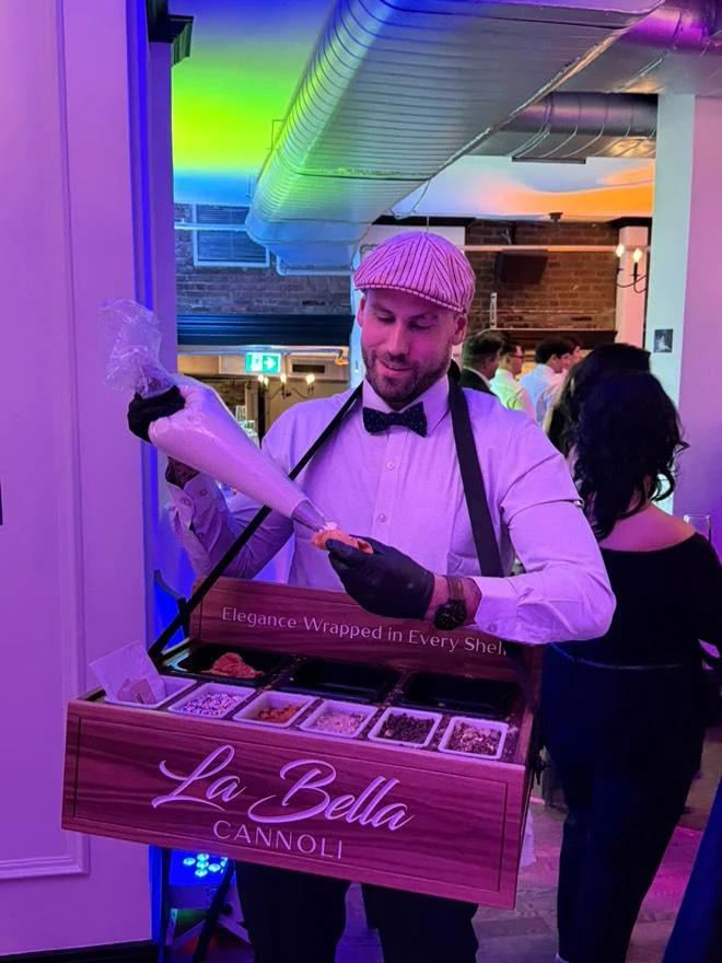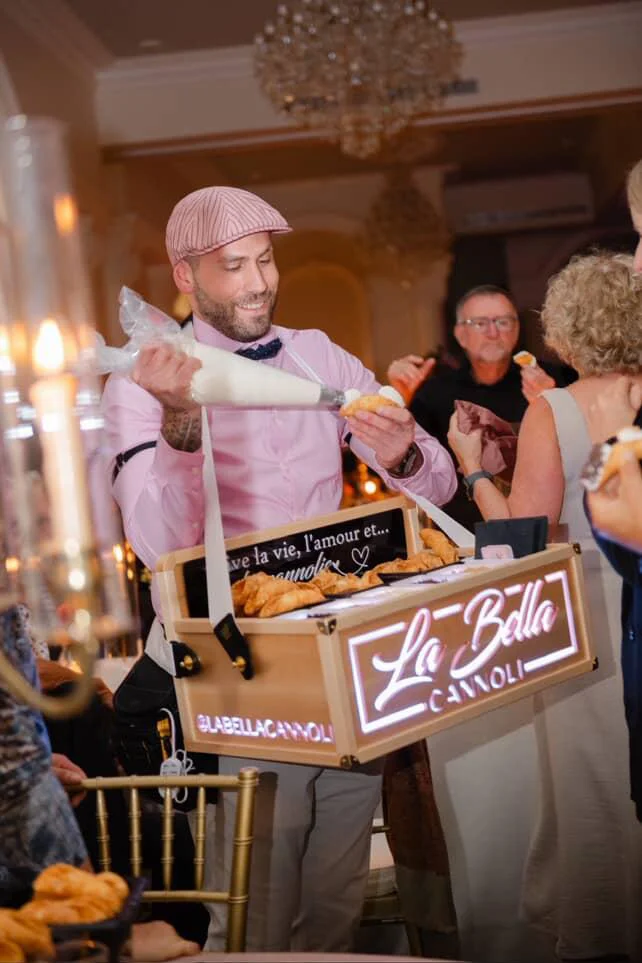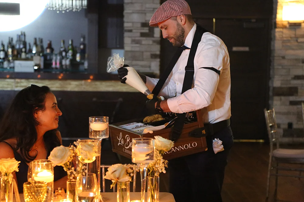 Notre service itinérant de cannoli apporte le dessert directement à vos invités. Il est mobile, interactif et conçu pour s’intégrer facilement à n’importe quel type d’événement. Voici à quel point c’est simple et amusant :