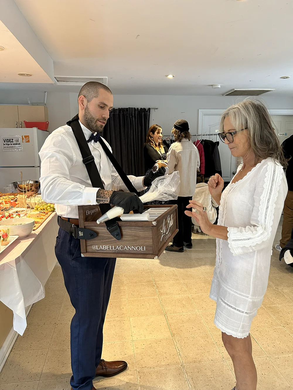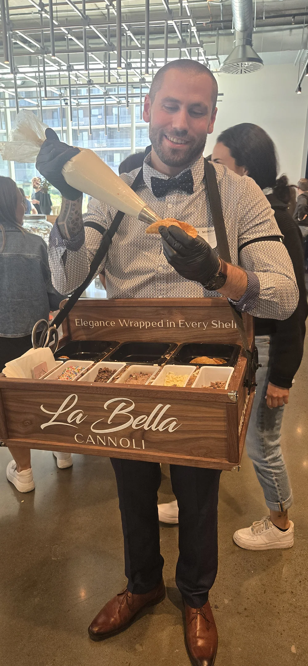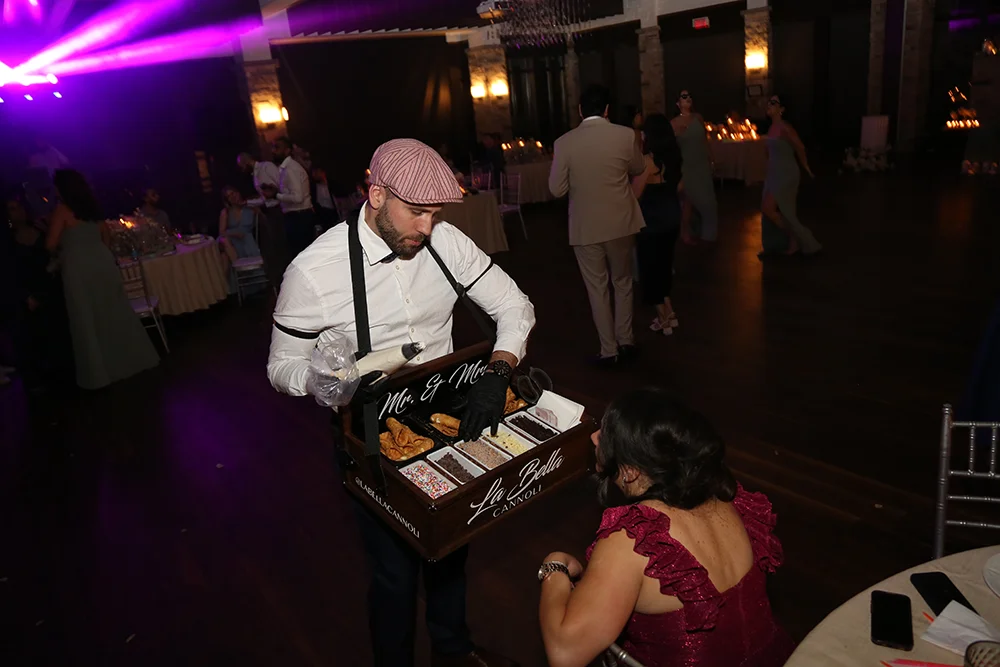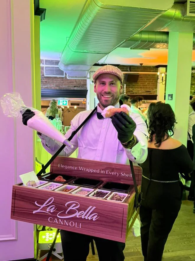 Notre service itinérant de cannoli apporte le dessert directement à vos invités. Il est mobile, interactif et conçu pour s’intégrer facilement à n’importe quel type d’événement. Voici à quel point c’est simple et amusant :